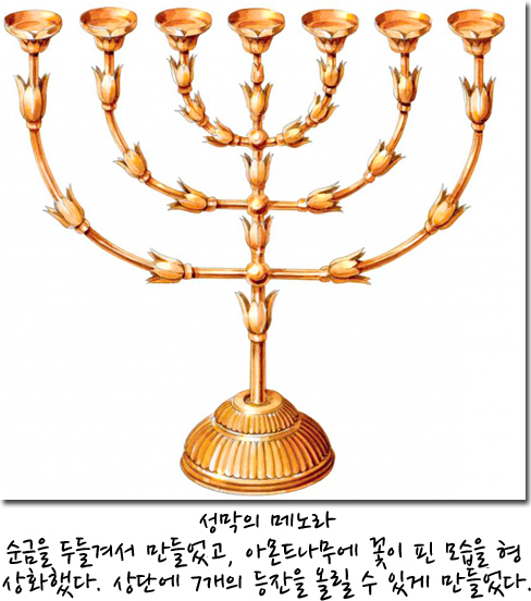 출애굽기에서 메노라(금촛대)를 어떻게 만들 것인지에 대한 설명이 나옵니다.