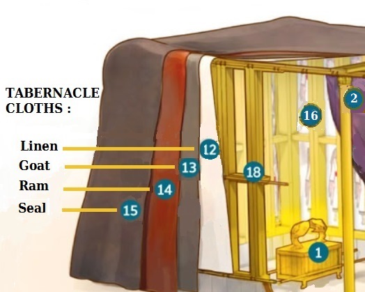 때문에 성막을 통하여 계시하시는 하나님의 의도를 이해해야 합니다. 오늘은 성막의 상징성에 대해 큰 틀에서 종합적인 정리를 하려고 합니다. 성막의 공간들이나 재료들, 그리고 색상, 모양, 크기, 수량 등이 모두 그리스도와 복음에 대해 중요한 영적 상징을 내포하고 있다는 것을 보았습니다. 그러기 때문에 제작 과정이 하나님께서 보여 주신 대로, 또 하나님께서 명령하신 대로 하는 것이 절대적으로 중요했습니다. 성막은 만유 위에 계시는 창조자 하나님이 우리의 구원자가 되셔서 어떻게 세상에 내려오셨는지를 보여 줍니다. 그래서 첫째로 정리한 소주제는 ‘하나님께서 우리를 찾아오신 길’입니다. 그리고 그 하나님이 인간으로 이 세상에 사시며 사역하시다가 최종적으로 죽으시고 부활하셔서 그 영광스런 보좌에 다시 오르셨습니다. 그 길은 그리스도께서 인간의 대표자인 대제사장이 되어 앞서 가신 것이기 때문에 ‘그리스도께서 앞서 가신 길’로 정리했습니다. 그다음은 그 예수께서 가신 길을 따라 우리가 나아가야 하기 때문에 ‘우리가 나아갈 새롭고 산 길, 영생의 길’이라고 정리해 보았습니다. 성막의 덮개에 숨겨진 네 가지 비밀들(The Four Mysteries hidden in the Coverings of The Tabernacle) 성막의 덮개에 숨겨진 네 가지 비밀들과 의미 #. 1