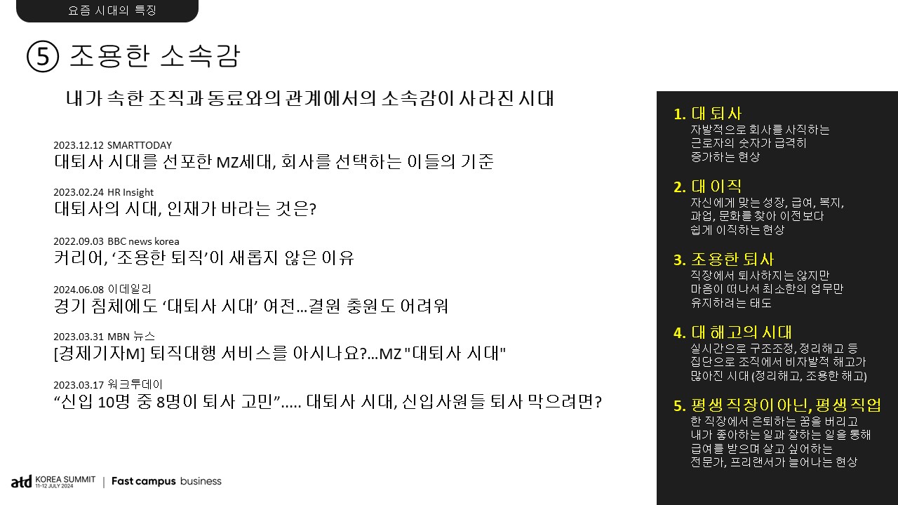 지금 이 시대의 특징을 조금 이해해 볼 수 있다면 조직의 방향성과 구성원 개개인의 성과와 성장 방정식을 조금은 다르게 기록할 수