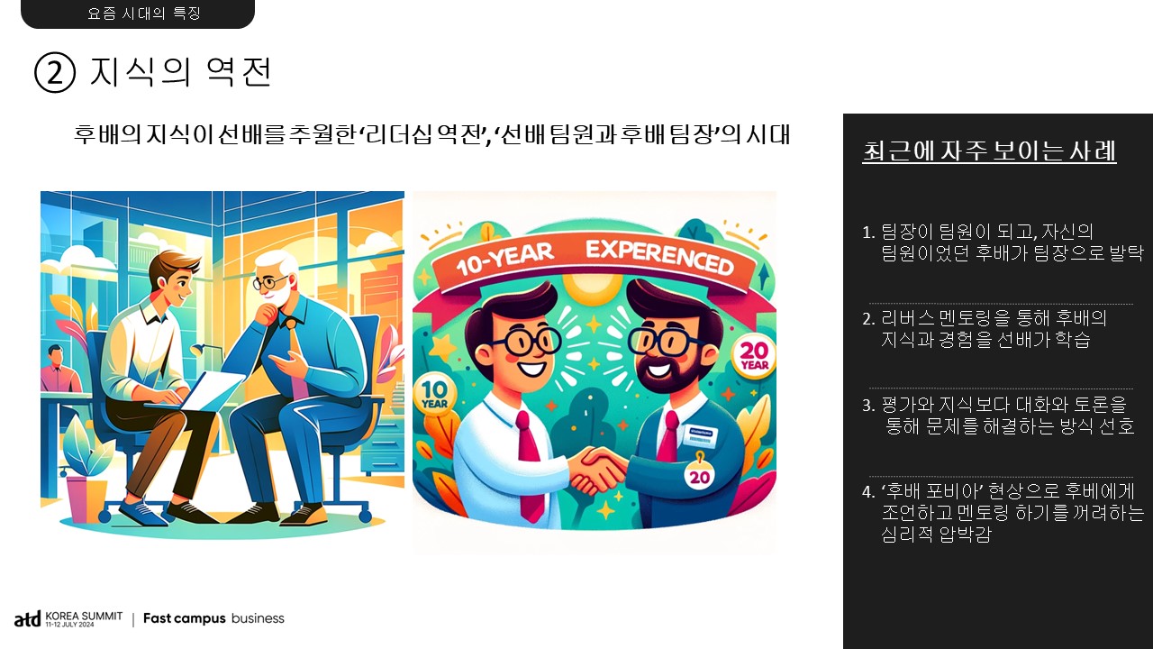만들어 내고 있었기 때문이죠. 그런데 엘더의 지식과 경험이 더 이상 큰 성과를 만들어내지 못하는 시대가 되었더라고요. 우리가 사는